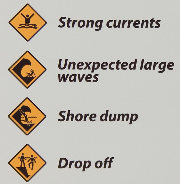 Yeah, we really need more of those attractive signs on our beaches. There is soooo many more dangers we need to be made aware of – blue bottles, hot sand, cold water…………..zzzzzzzzzzzzzzzzzz