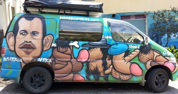 Time for some tabloid titillation. In fact, it’s about that virile part of male anatomy. Sometimes pictures really do speak for themselves. The offending campervan, in all its resplendent glory of cliched national stereotyping, was spotted recently at Bondi Beach. Where else! Imagine touring the Wide Brown Land in it and happily tooling around genteel National Party homelands and burbs. The mind boggles. Anyway, enjoy. Or not?