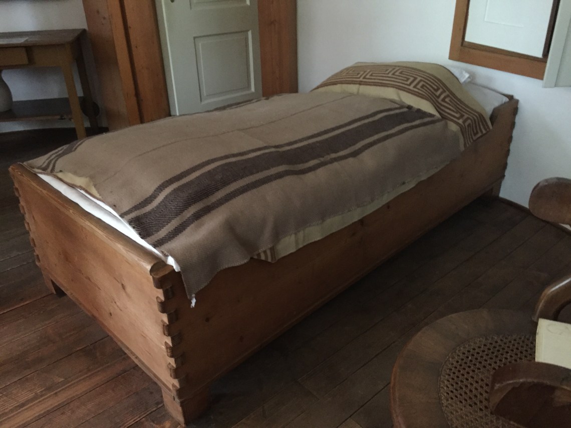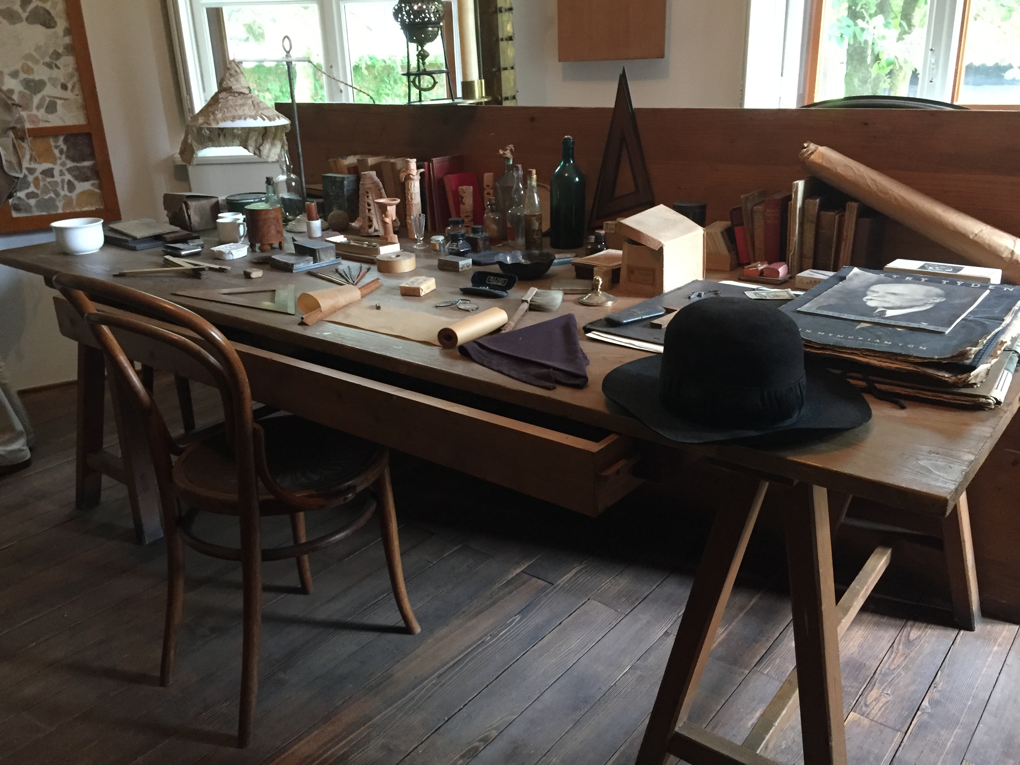 Plecnik had no family, apparently no lovers, and even declined a marriage proposal so as to concentrate on his work. His preserved studio home is where he worked obsessively, supported by a loyal housekeeper. The house reflects a singular mind, with many design details to suit his daily habits and quirks. Visitors were received in a back room without seats and given short thrift. His single bed was set in the study with his desk. Important guests were invited into a small inner sanctum.