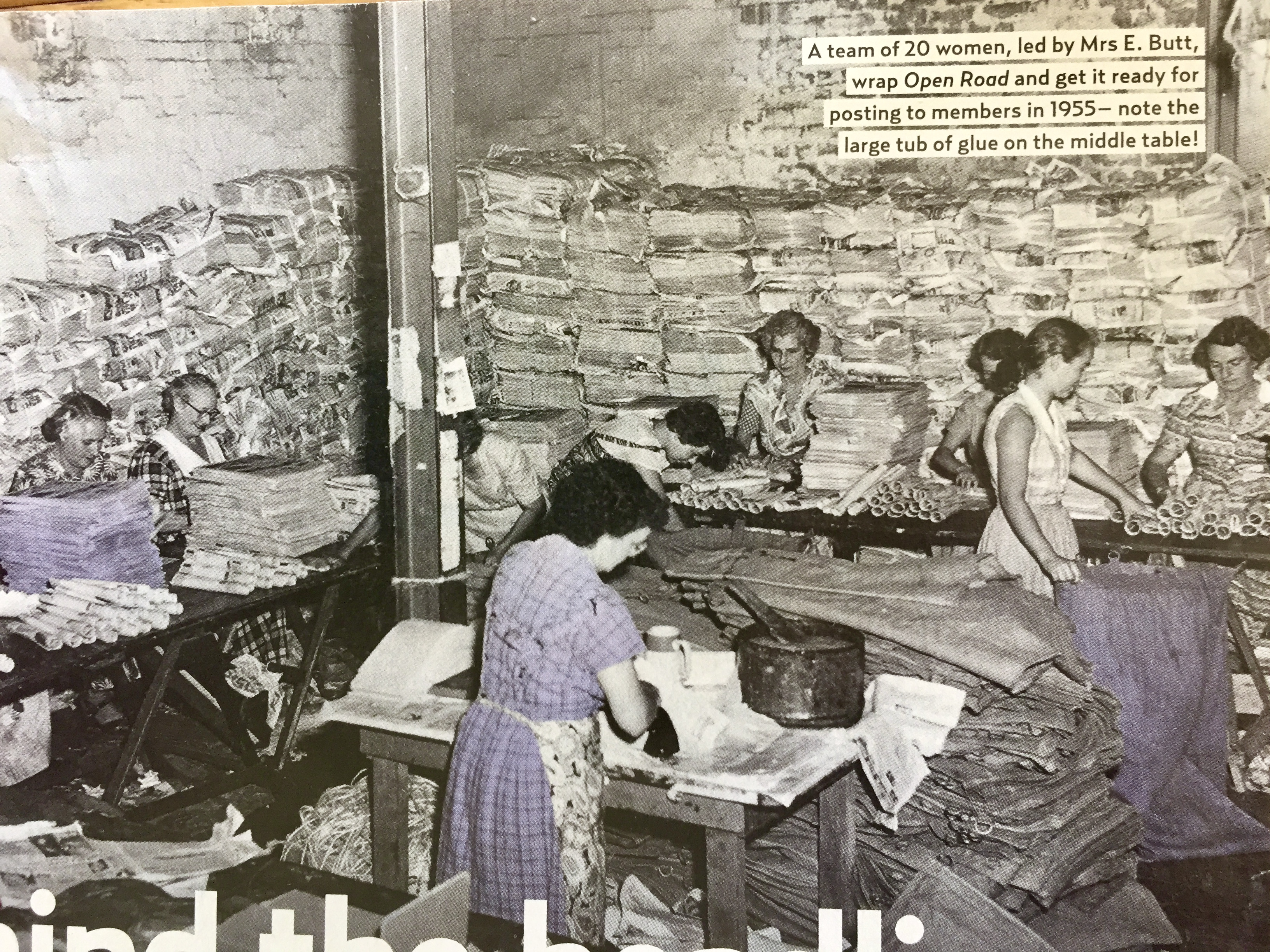 “The mountain of papers comes to the wrapping hall on the Monday. By the Friday at 4 pm the 250,000 copies – weighing about 18 tons – are all in the post. It is an effort requiring organisation and knowhow – and the usual NRMA spirit of service.”
