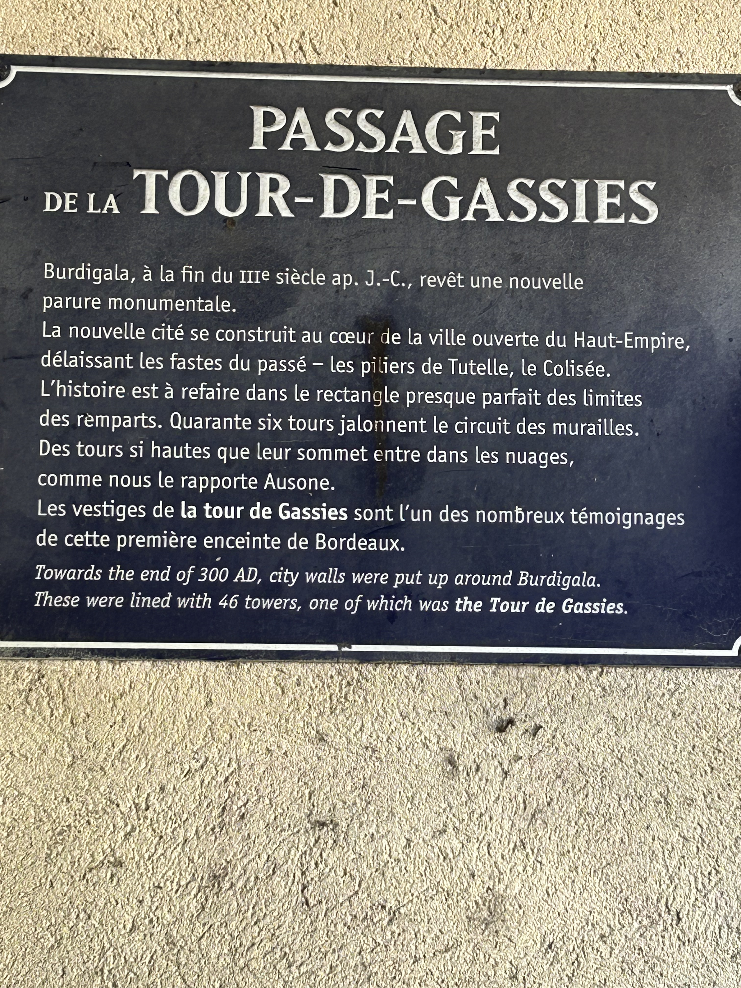 At the Mirroir d’Eau in central Bordeaux, a crew was filming this young ballerina. Billboards were a campaign about the beauty of cancer survivors. Stone remains date from 300 a.d., from the towers that protected Burdigala (precursor to Bordeaux) – the homeless man was proud to explain as he tidied up his corner behind. Camino walkers go through the city on the Rue des Argentiers. And even the fun fair is in good taste!