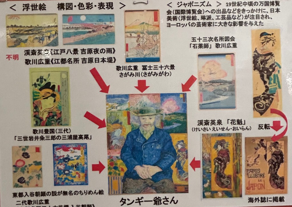 Japanese art prints inspired Vincent, changing his perceptions, as he developed his own post-impressionist and original painterly style. I’m not sure though that he would have appreciated the Van Gogh iconography seen in Japan last year, which celebrates his eminent position in the Western art canon.